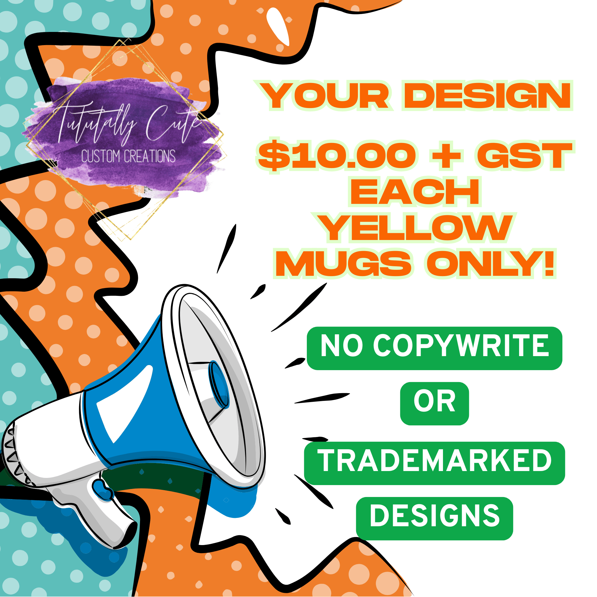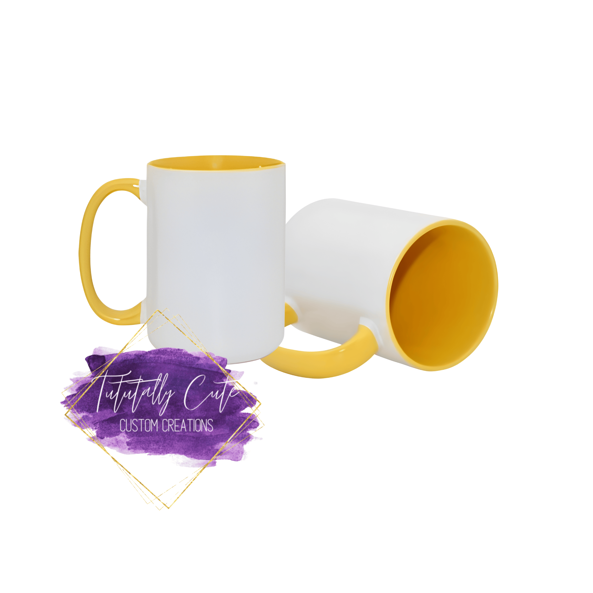 We’ve got too many yellow-handled mugs — so you win! These 15oz white mugs with yellow handles and interiors are ready to be customized with your photo or design idea, all for just $10 CAD plus gst.